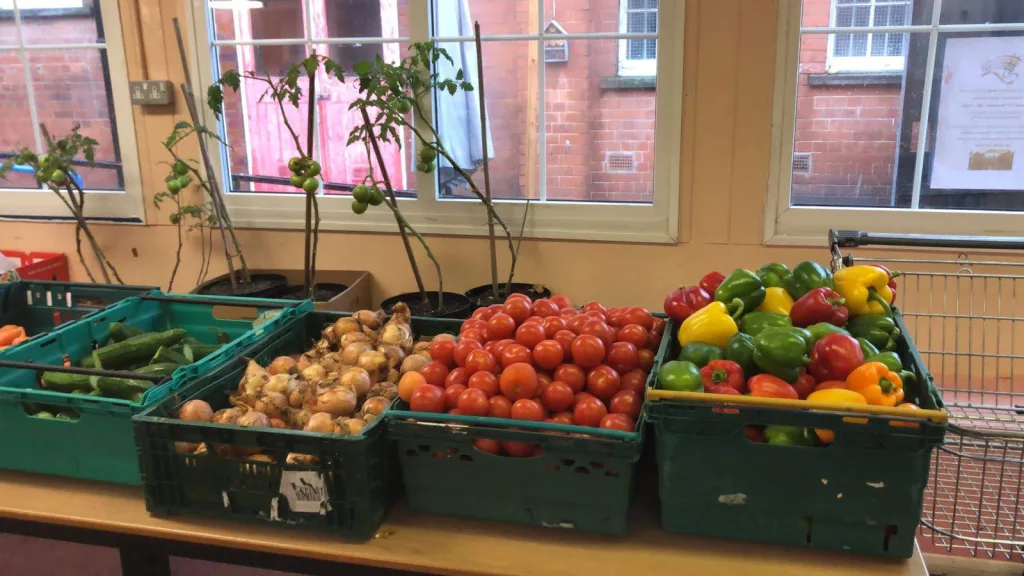 Eve from Woodgate Community Food showed Clockwise the container vegetable and herb garden planted by children whose families use the food bank & Volunteer Nikki Little was busy delivering the prepared food parcels!