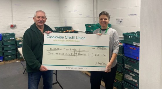 In January 2026 Clockwise Credit Union awarded £250 to Nuneaton Foodbank who will use the funds for much needed and little donated items.